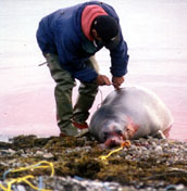 We made over 50 miles today. Right now we're nicely camped at Cape Adelaide, which is where we wanted to be - our prime spot. The boys went out hunting. I went out with Tommy and Abel, and they shot a large bearded seal out in the water, and safely brought it to shore. They were after the skins to make mukluks (boots). At the same time John MacDonald and Ron went inland with Doug, and shot two caribou. We have lots of fresh meat! We didn't do any fishing - Abel said he might do some fishing tomorrow. It would be nice to have some fresh char.